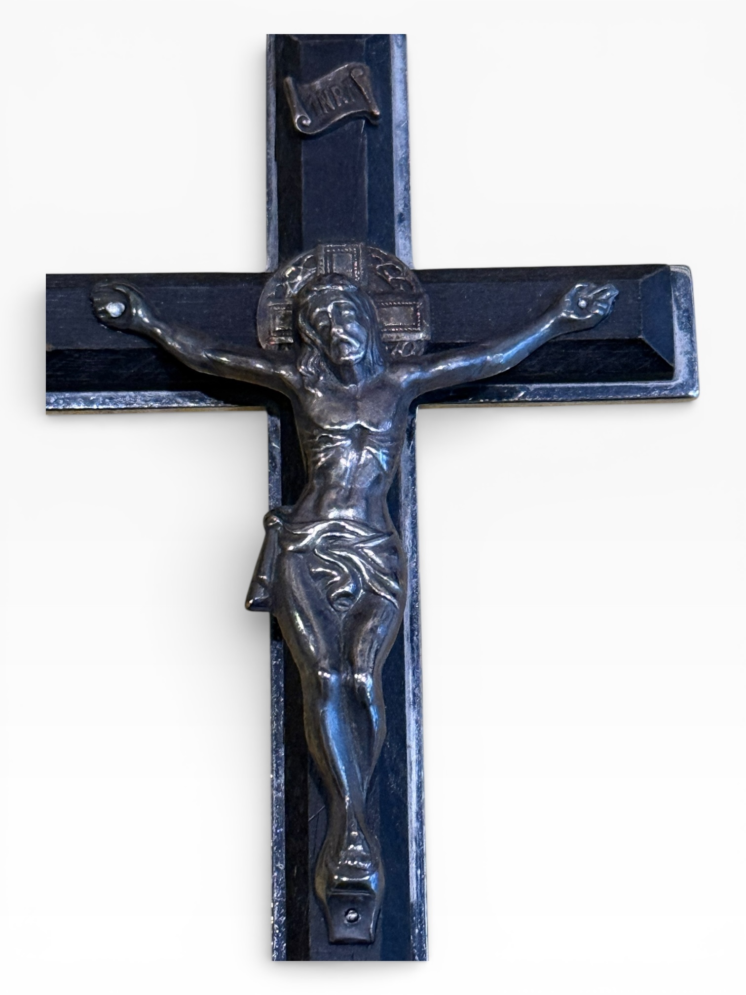 Crucifijo metal, ébano y bronce